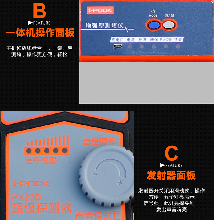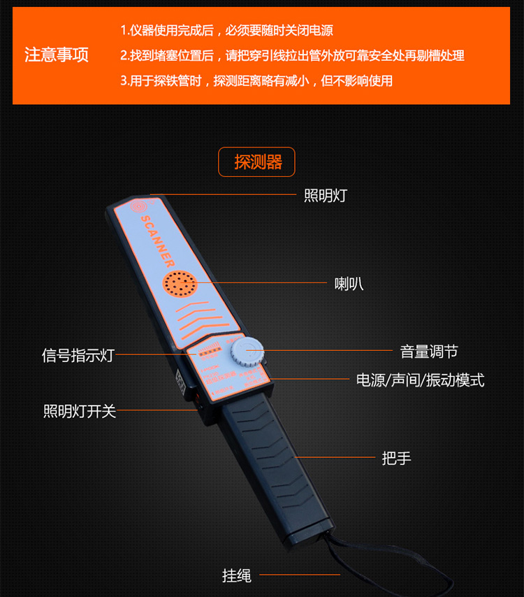 • 功 能:尋線帶有振動功能,鋰電池可充電款,20米管道測堵儀。